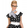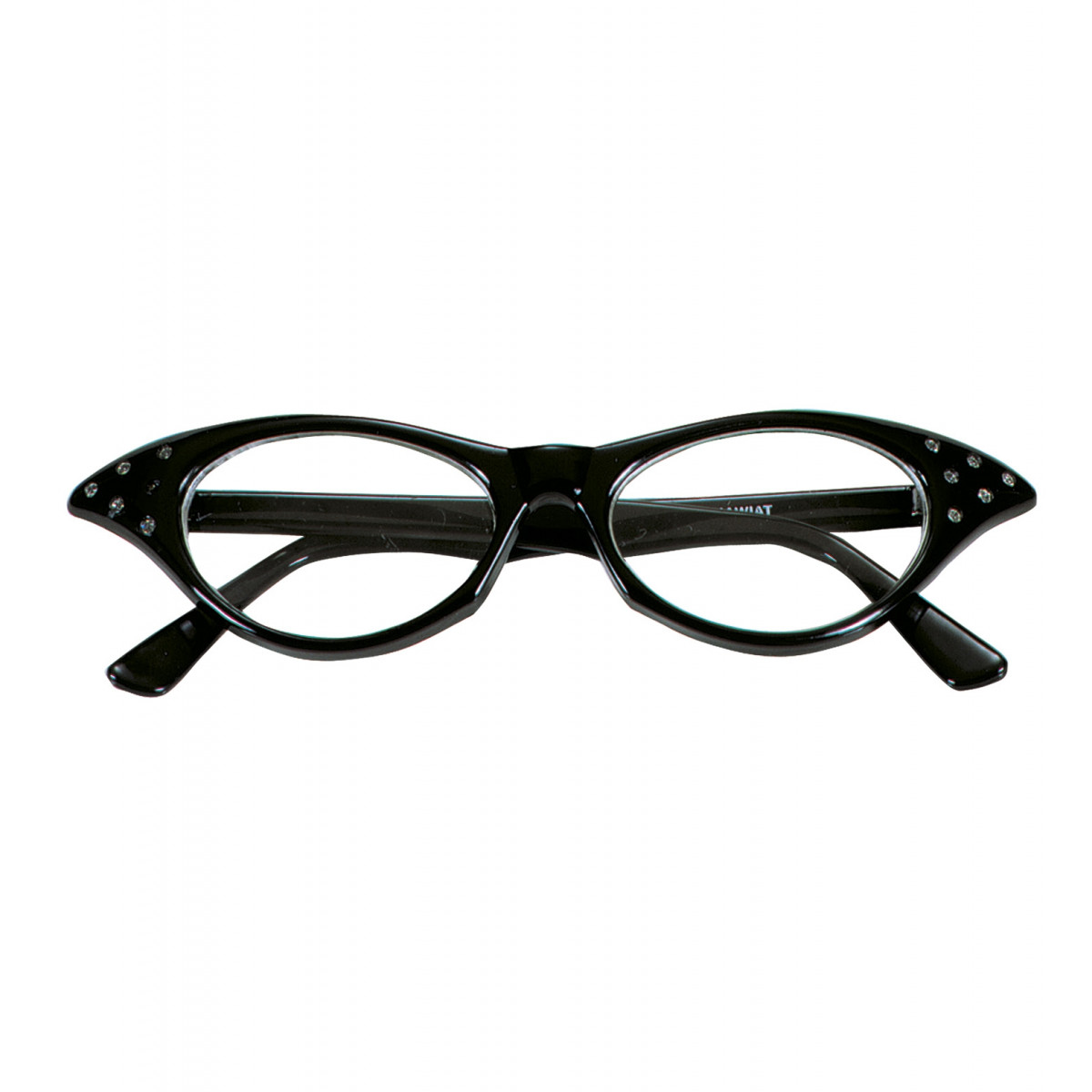 Črna očala 50 -ih so popolna dopolnitev vašega kostuma 50 – tih let. Zapeljiva črna očala so oblike mačjih oči in so okrašena s srebrnimi kamnenčki. Okvirji vsebujejo leče brez dioptrije.