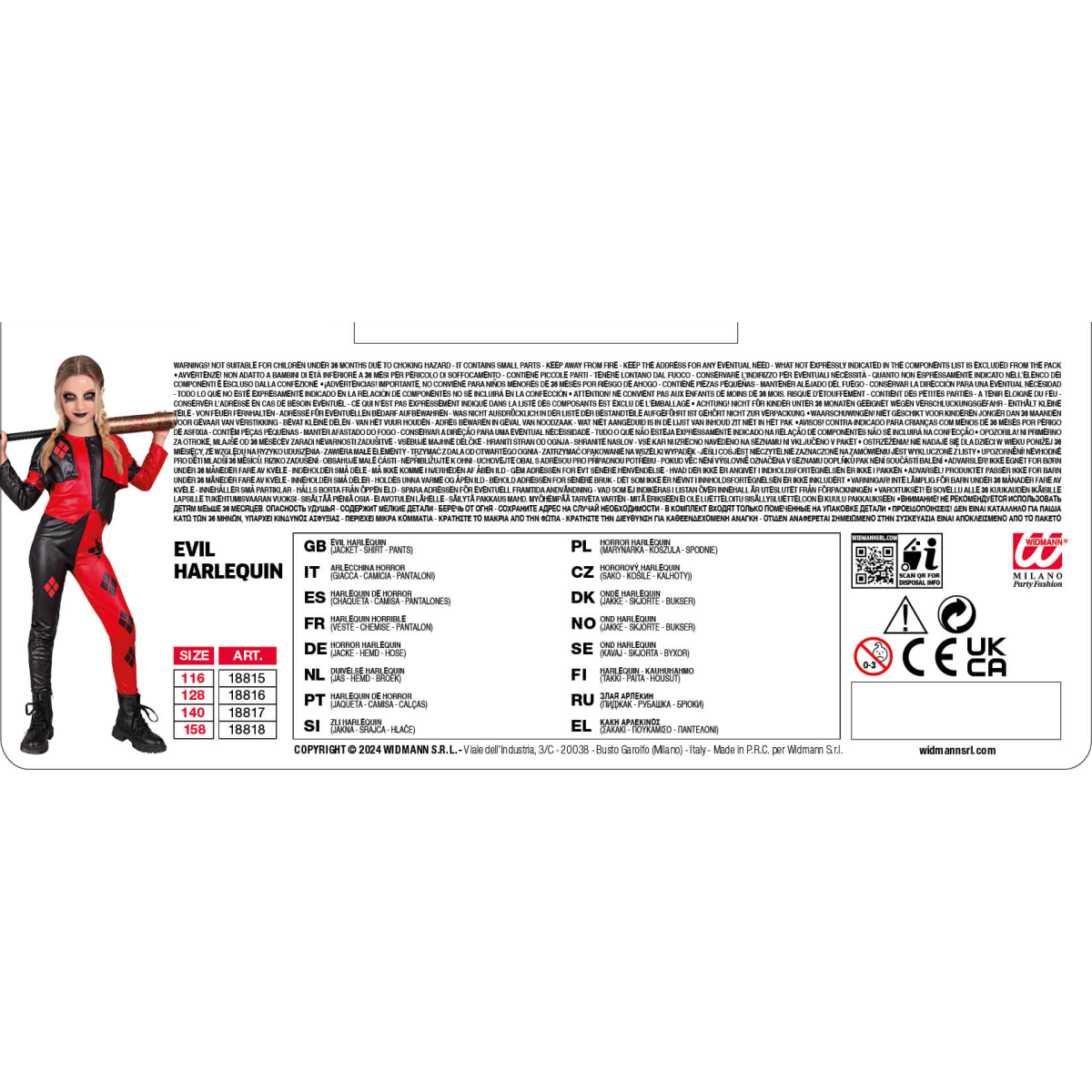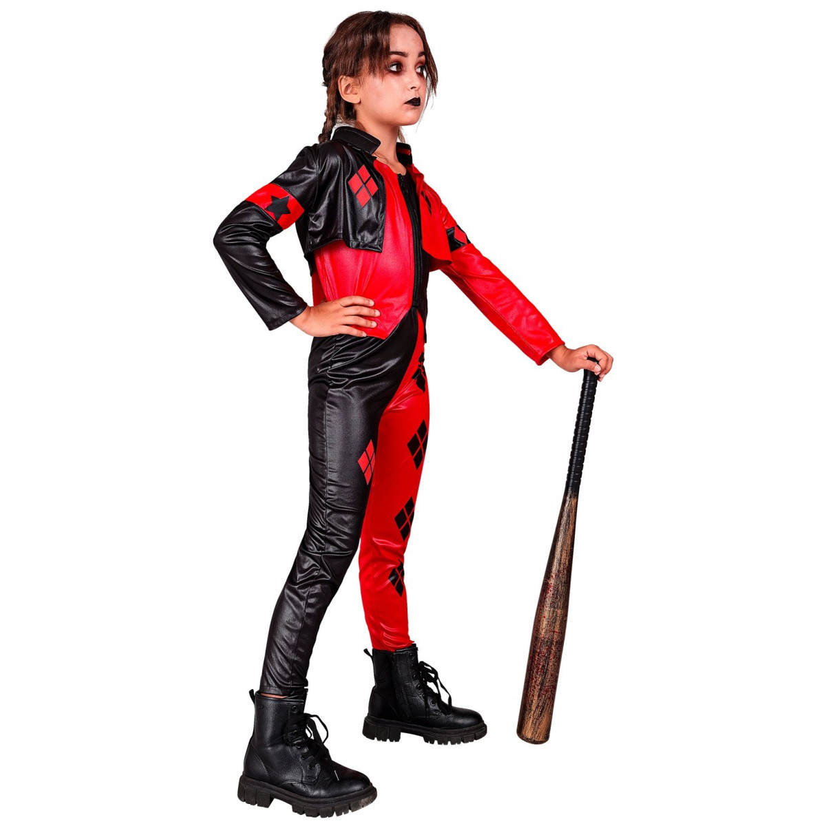 Ta dekliški kostum Harley Quinn vključuje dvobarvno jakno s telovnikom in ujemajoče se hlače z značilnimi karo vzorci. Rdeče-črna kombinacija ustvari drzen videz priljubljene stripovske junakinje.