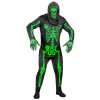 Moški pustni kostum okostnjak - skeleton v zeleni barvi. Komplet zajema enodelnega pajaca, masko in rokavice. Pajac je enostaven za oblačenje in se odlično prilega telesu.