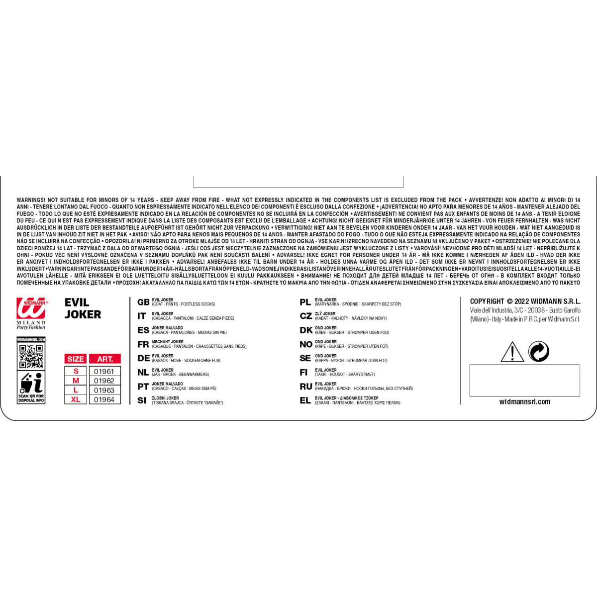 Joker, strašljivi kriminalec in večni nasprotnik Batmana. Njegov zaščitni znak: kredast obraz, črne uokvirjene oči in krvavo rdeča usta, zvita v hudičev nasmeh. Izpolnite svoje edinstvene kostumske sanje z originalno kostumografijo s pustnim kostumom Joker. Tudi za noč čarovnic bo kostum Joker prava izbira.