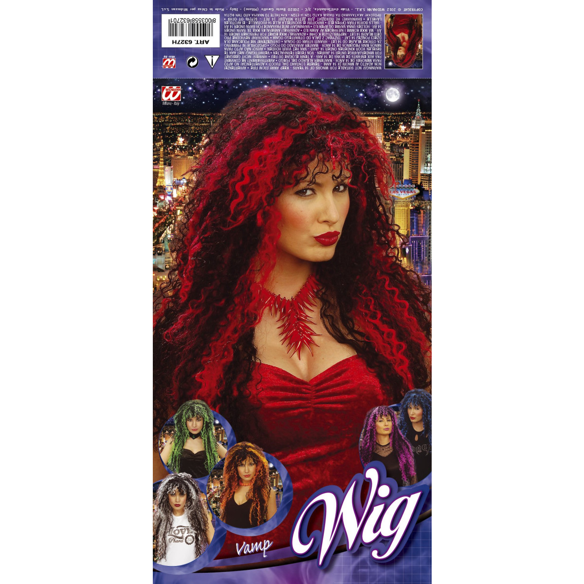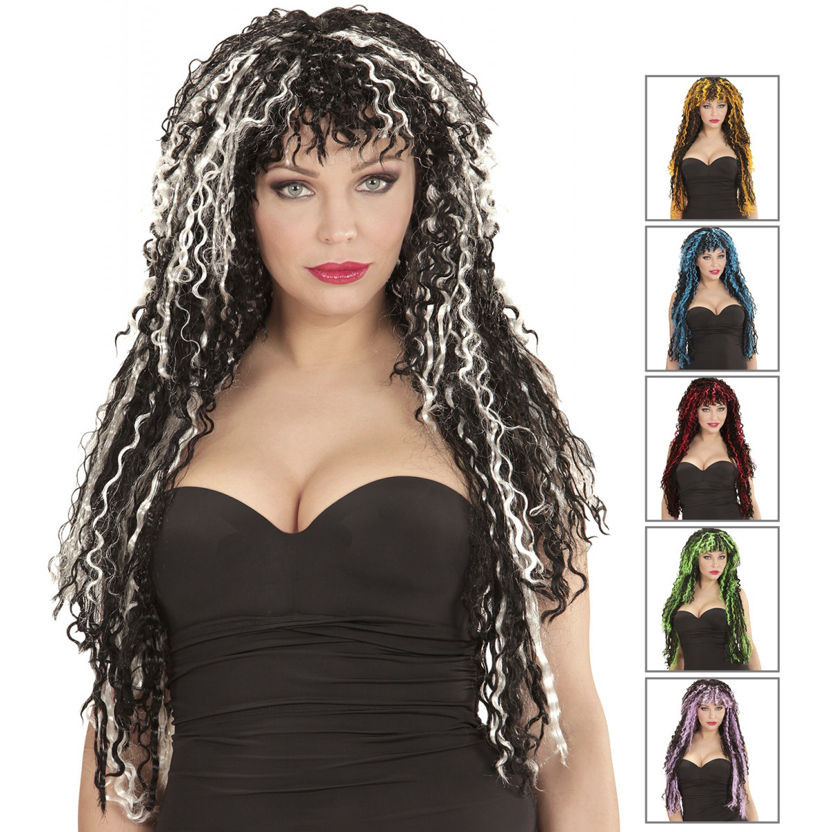 Izjemna lasulja za vampirko ima dolge skodrane lase v kultnih barvnih kombinacijah s črno. Dolga skodrana lasulja z različnimi barvami pramenov sega vse do komolcev. Na voljo je 6 barvnih kombinacij te atraktivne lasulje za vampirko.