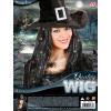 Črna lasulja za čarovnico sega čez ramena. Lasje imajo naključno posejana srebrna pramena in male zvezdice. Za popoln izgled potrebujete le še klobuk in metlo.