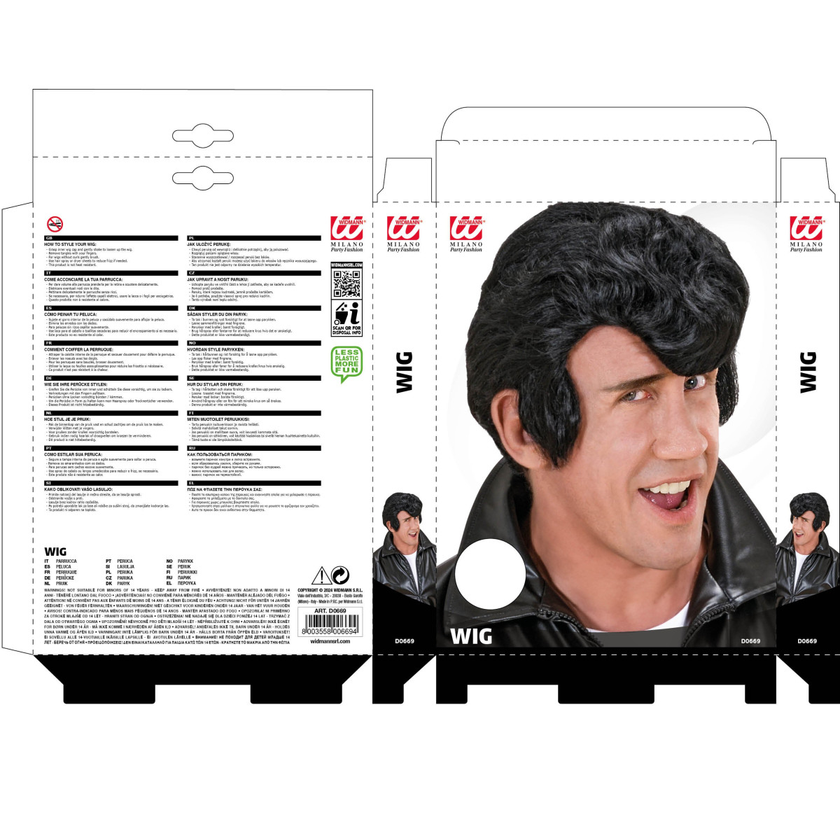 S frizuro iz zlate dobe petdesetih let boste prav gotovo poželi kak kompliment. Lasulja je v črni barvi. Črna moška lasulja z zalisci je odlične kvalitete in naravnega videza.