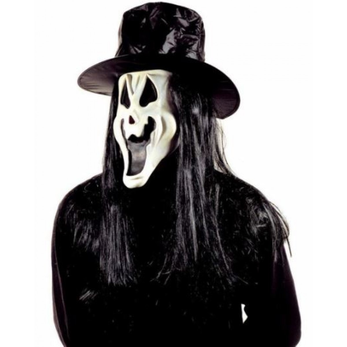 Visoko kvalitetna maska, ki se sveti v temi, je grozljivih motivov. Všite ima lase in klobuk, ki vam zagotavljata diskretnost. Maska je bela s črnimi poslikavami. Priporočamo! Maska duh s klobukom in lasmi, svetleča v temi. 3 modeli.