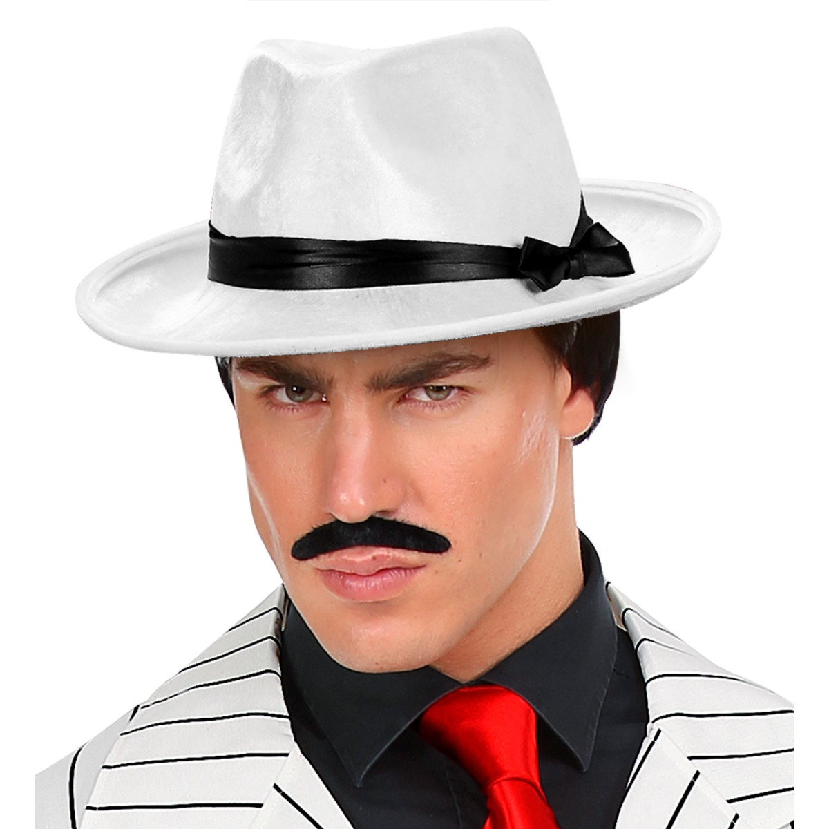 Svetleč in kompakten klobuk je kot nalašč za gangsterske glave. Velikost klobuka je odrasla, oblike so elegantne in ravno prav vpadljive. Privoščite si pust malo drugače. Klobuk za gangsterja v beli barvi s črnim trakom.