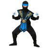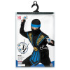 Otroški pustni kostum modra ninja z orožjem. V kompletu prejmete: pajaca, moder bojevniški ščit, masko, pas, rokavice, trakove za roke, noge in glavo. Poleg prejmete tudi orožje: 2 bodala - sai in 2 metalne zvezde - shuriken.