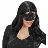 Pustna krinka z bleščicami je zelo skrivnostna, ker ima mrežico čez oči. Tako ste lahko zelo diskretni. Zavežite si krinko in odplešite v najbolj pisano noč v letu. Krinka črna z bleščicami.