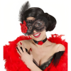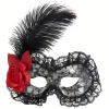 Elegantna krinka s peresom in rožo je na voljo v kultni črno rdeči barvi. Odlična za pustni ples v maskah. Črna krinka s čipko, rdečo rožo in črnim peresom.