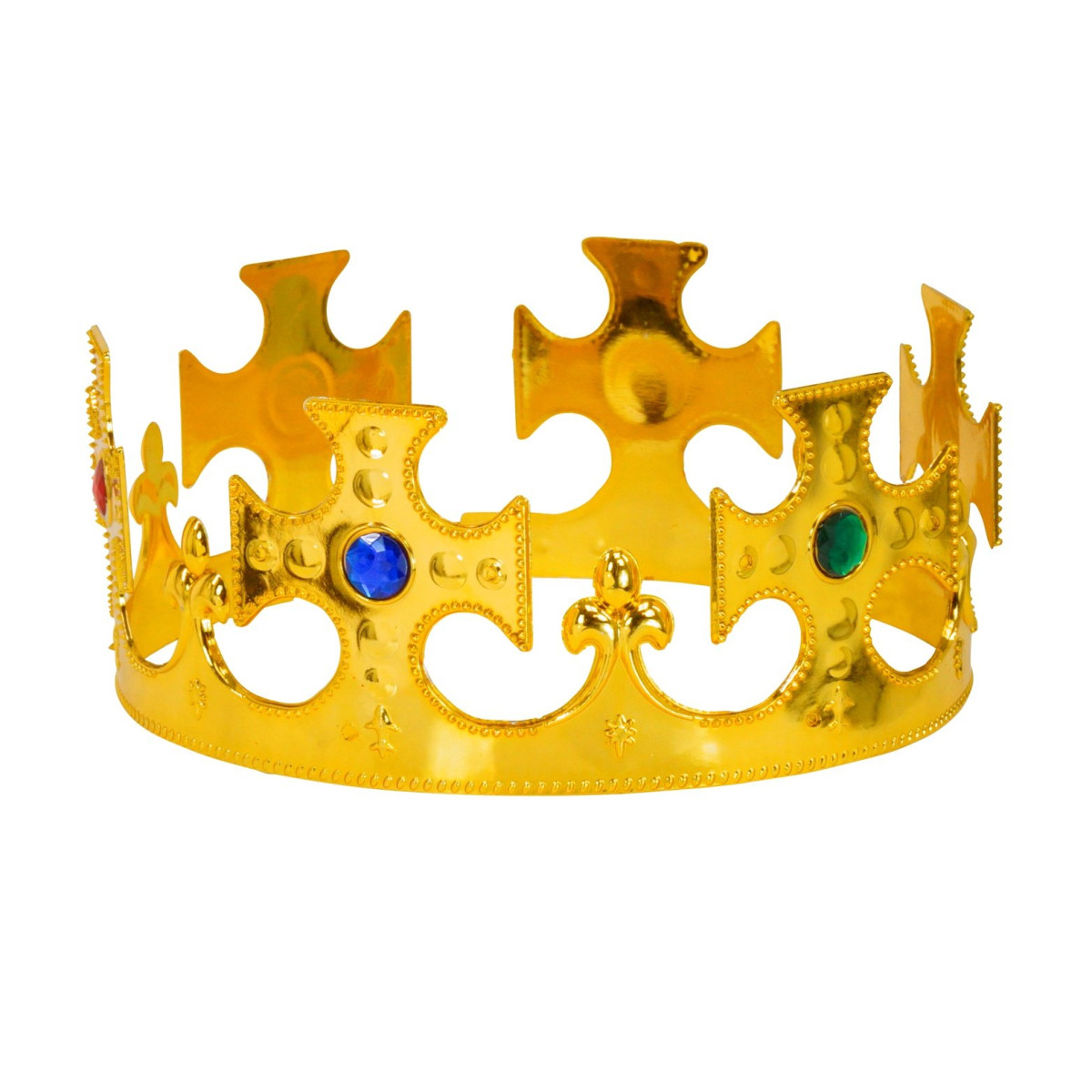 Kraljeva krona je nepogrešljiv dodatek za vsak kraljevski videz – naj bo to pust, karneval, tematska zabava ali gledališki nastop. Krona je v zlati barvi in okrašena z barvnimi dragulji, ki poskrbijo za razkošen in prefinjen videz. Zaradi prilagodljive velikosti je primerna tako za odrasle kot otroke. S to krono boste na vsakem dogodku zasijali kot pravi kralj.
