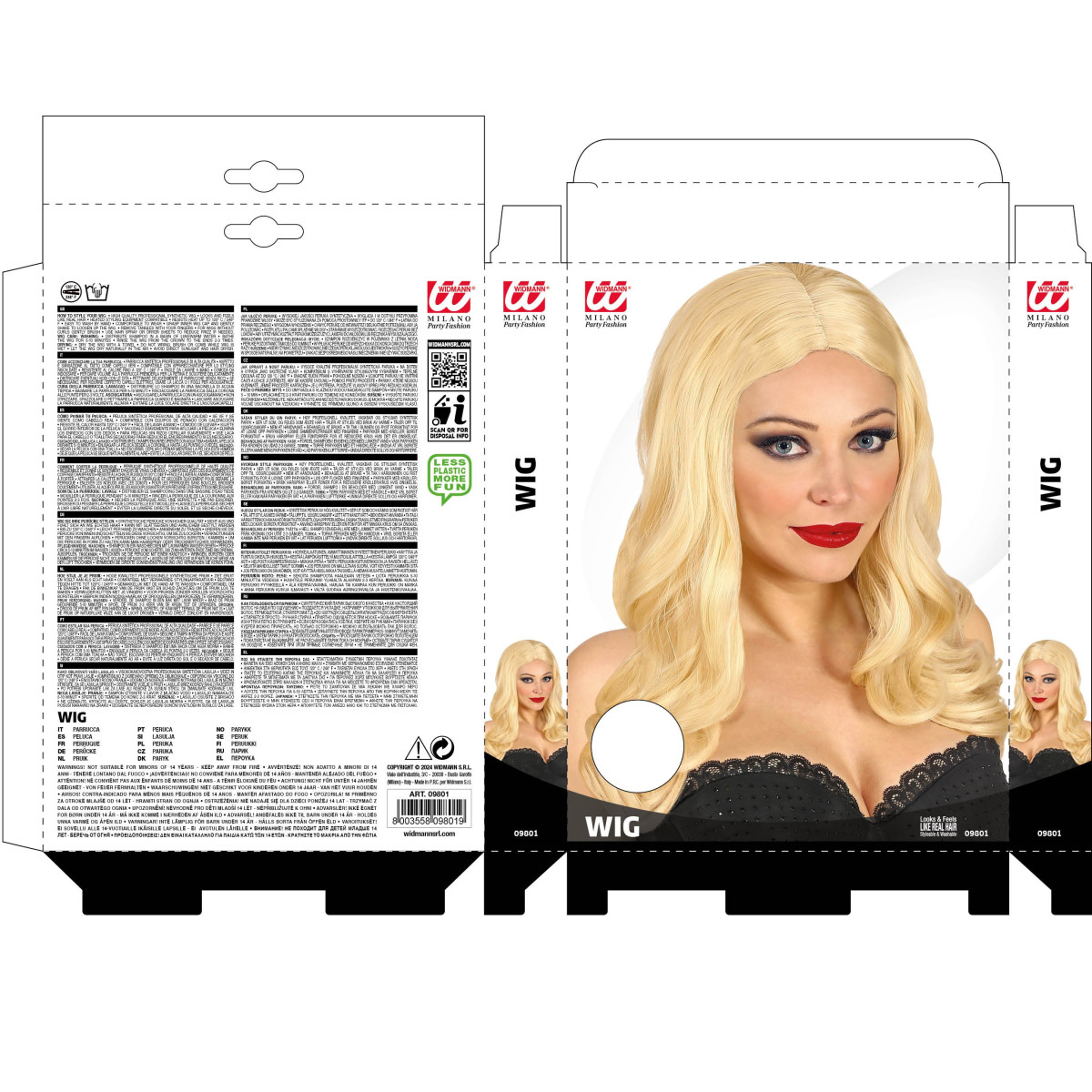 Pohvalili bodo vašo lepoto, ko se boste na zabavi pojavili s to čudovito dolgo blond lasuljo. Ta blond lasulja je dolga, rahlo valovita in sega čez ramena. Lasuljo kombinirajte z elegantno obleko, da postanete najbolj očarljivo božanstvo, ki ga pozna človeštvo.