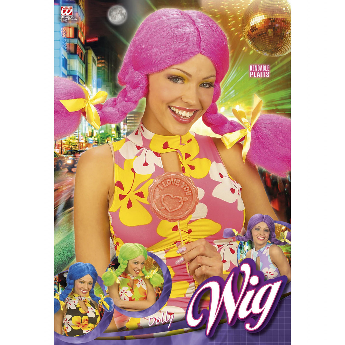 • Na voljo je zelena, modra, vijolična in roza barva lasulje s kitkami.
