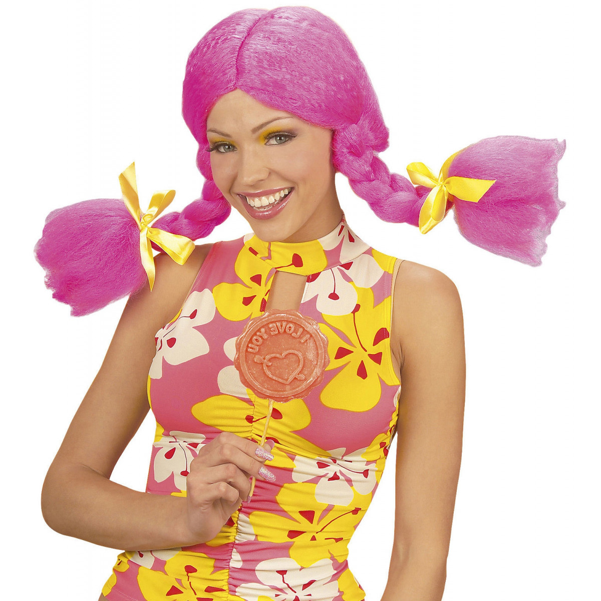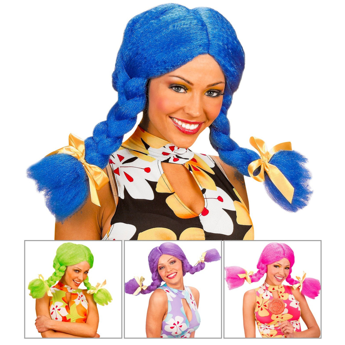 Dekliška pustna lasulja je dobavljiva v različnih barvah. Ima dve kitki, ki sta speti s pentljo. Prava lasulja za vse navihanke.