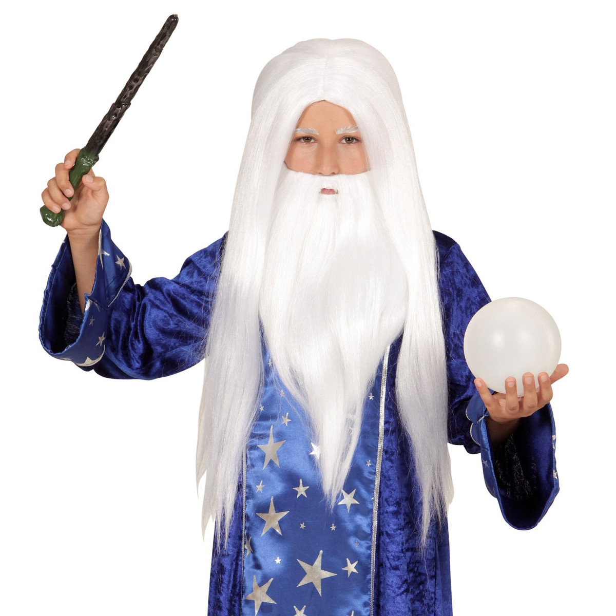 Otroška lasulja in brada za čarovnika je popoln dodatek za male čarovnike. Lasulja ima dolge, ravne, bele lase, ki segajo skoraj do pasu, in je narejena iz mehkih in prijetnih materialov, ki so udobni za nošenje. Brada je dolga in gosta, pritrjena z elastičnim trakom, ki se enostavno prilagodi vsakemu otroku. Skupaj ustvarjata čaroben videz, idealen za pustne zabave ali domišljijske igre.