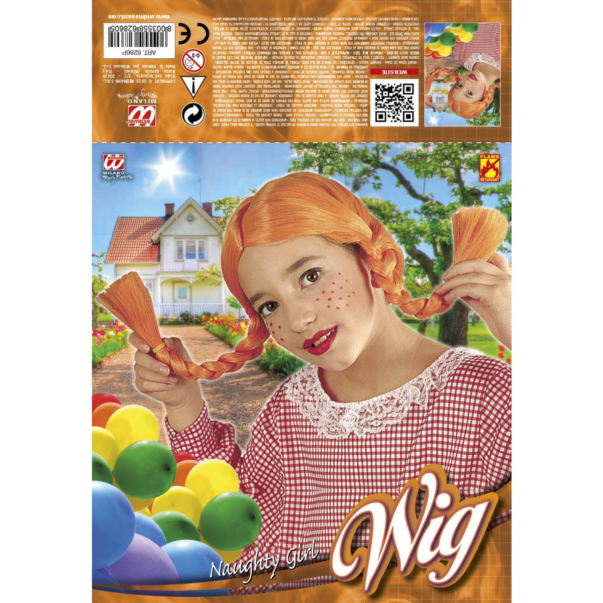 Lasulja za Piko Nogavičko za deklice. S kostumom in lasuljo za Piko Nogavičko oranžne barve in dvema kitama bo vaša maškarada nepozabna. Lasulja uporabna na maškaradi, igri, na Pikinem Festivalu, otroški zabavi.