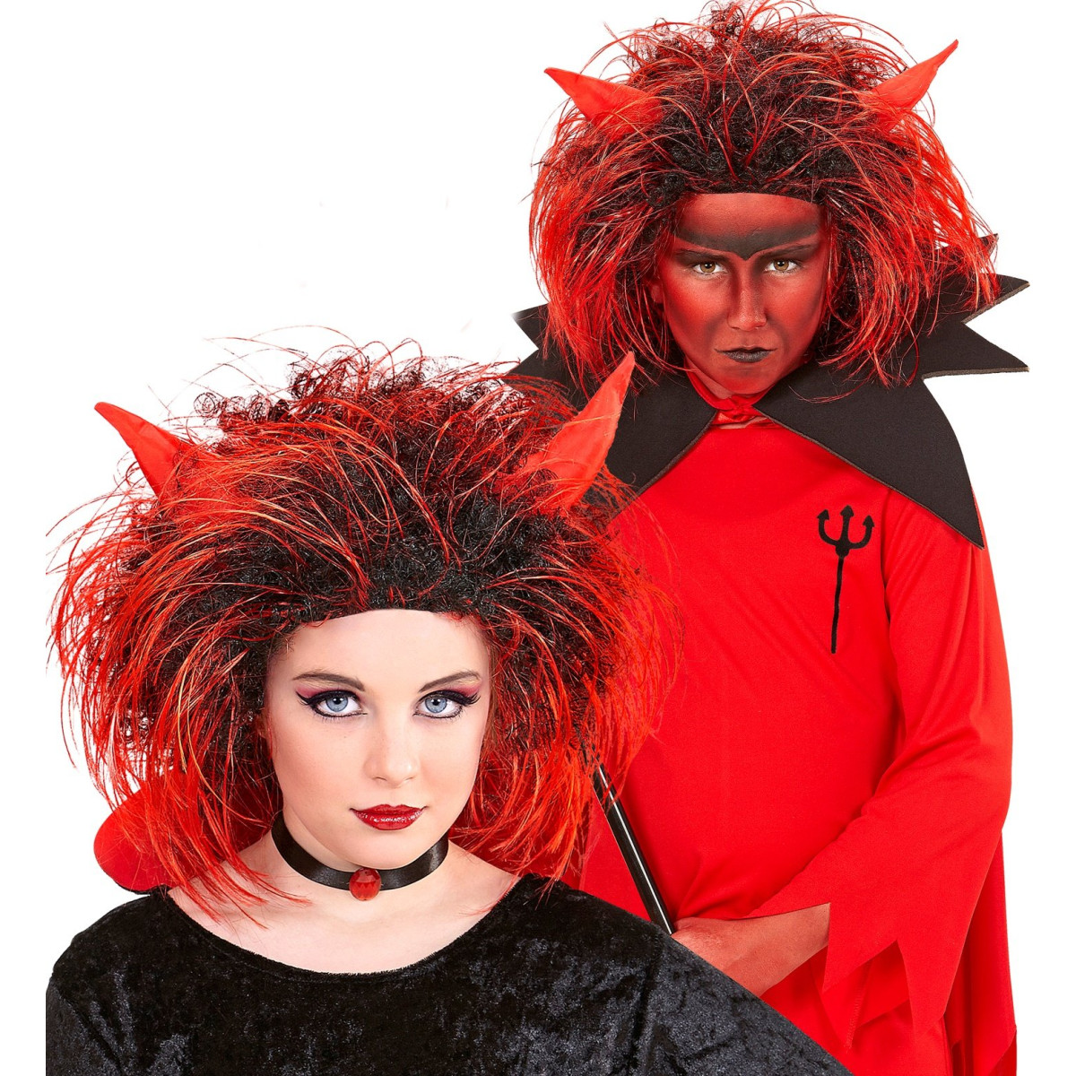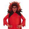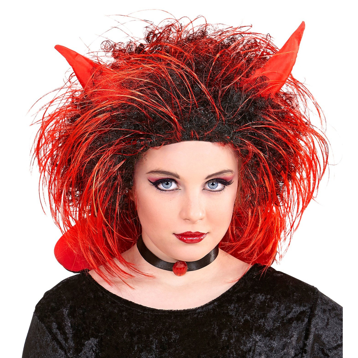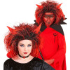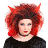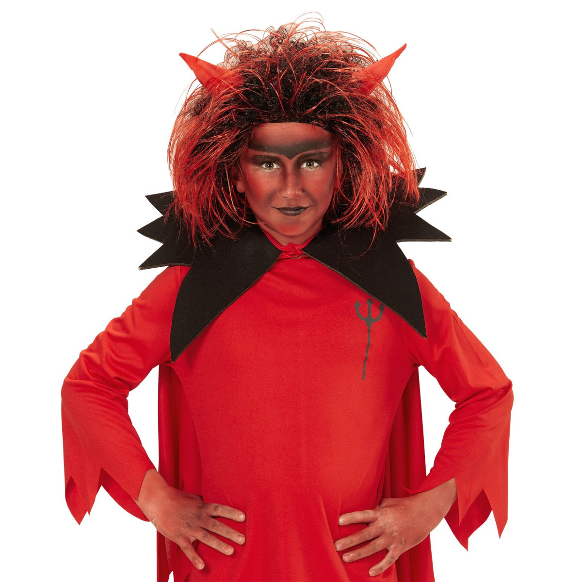 Otroška lasulja za hudička z rdečimi in črnimi prameni. Lasulja ima dva igriva rdeča rogova, ki dodata posebno noto. S prameni, ki segajo do ramen, je popolna za kostumske zabave. Udobna in enostavna za nošenje. Vaš mali hudiček bo navdušen!