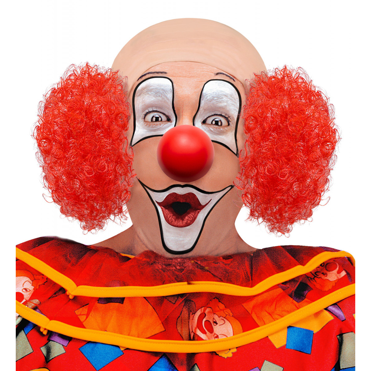 Lasulja za klovna s čelom se odlično poda k prevelikim hlačam in belim napudranim obrazom. Za pust in rojstnodnevne zabave v unikatnem klovnovskem kostum si na glavo nadenite lasuljo za klovna s čelom in poskrbite za nepozabno zabavo. Skodrana klovnovska lasulja je na voljo s pisanimi ali rdečimi kodri.