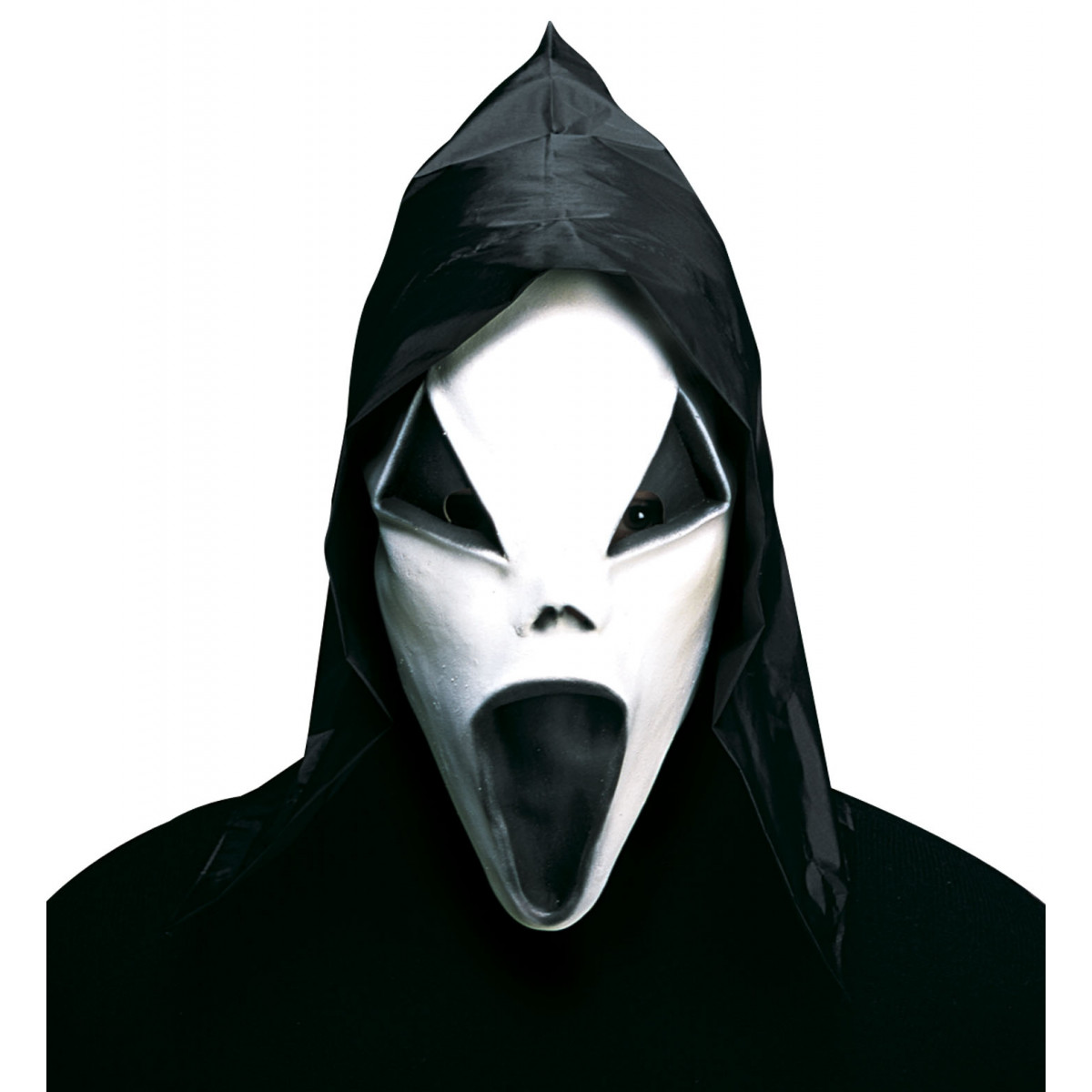 Čudovito srhljive maske se svetijo v temi. Vsaka ima od maske naprej še ruto, ki pade čez zadnji del glave. Tako ste dobro zakriti. Dva motiva spominjata na vesoljca, en je spak in tri predstavljajo različne lobanje. Maska duh s kapuco svetleča v temi. 6 modelov.