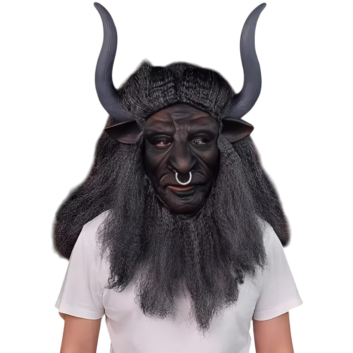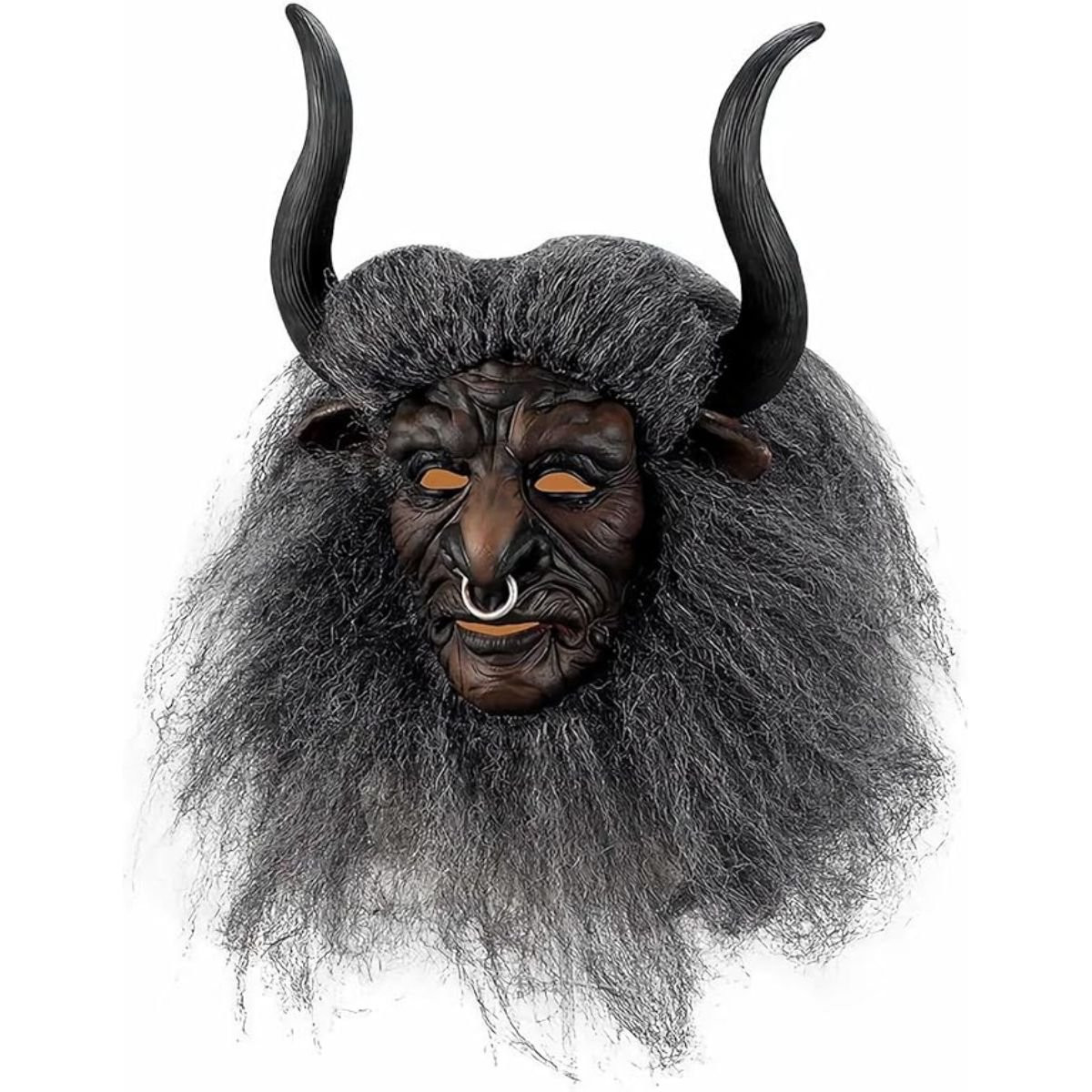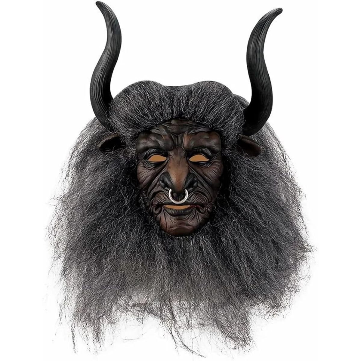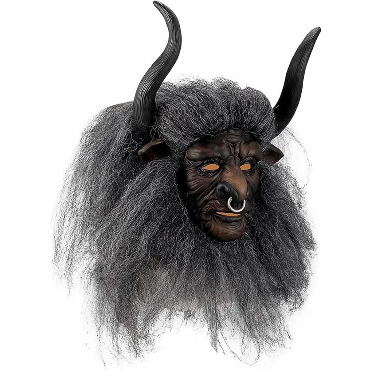 Ta realistična lateks maska z dolgimi črnimi rogovi in gosto črno grivo je popolna izbira za strašljivo preobrazbo v peklenske like. Z njo boste ustvarili pristno podobo krampusa, parkeljna, hudiča ali demona, ki bo zagotovo pritegnila poglede na vsaki prireditvi.