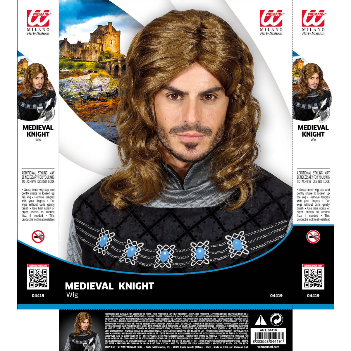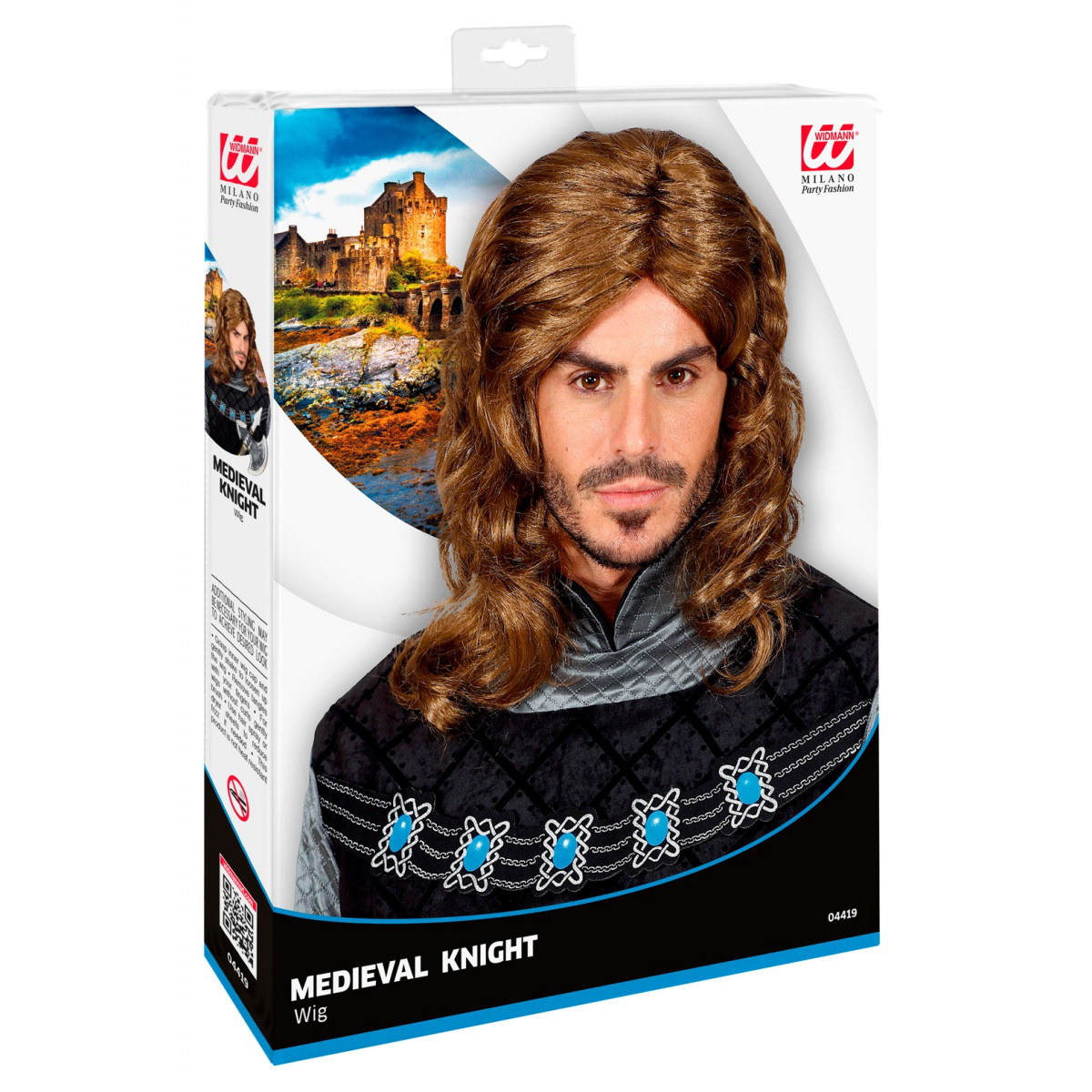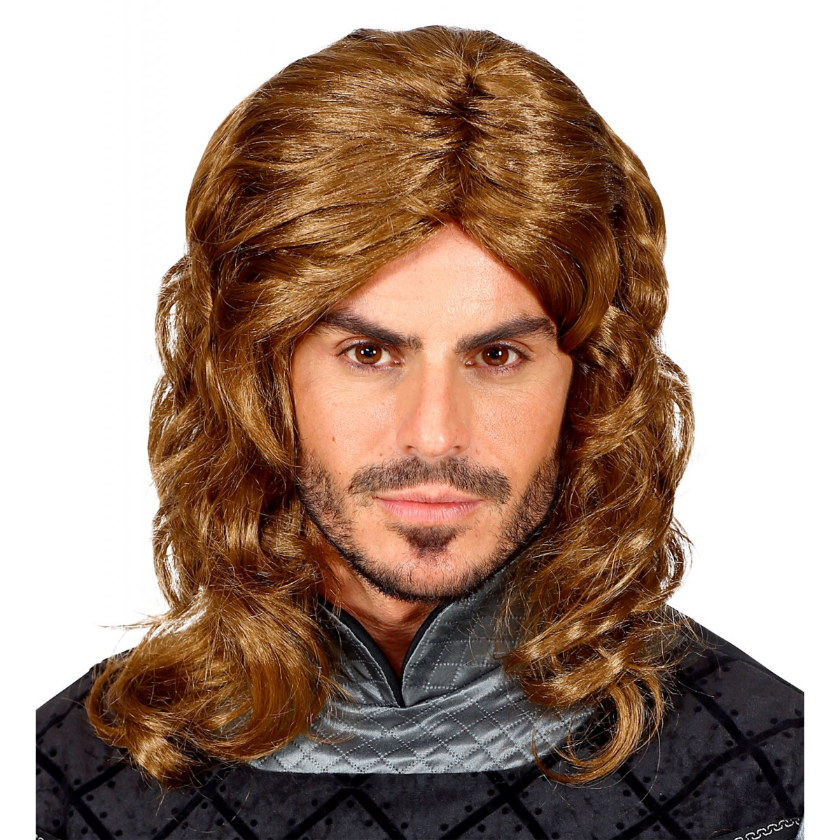 Moška rjava rahlo skodrana lasulja je primeren za srednjeveškega viteza, galca, hipija ali rokerja iz sedemdesetih let prejšnjega stoletja.