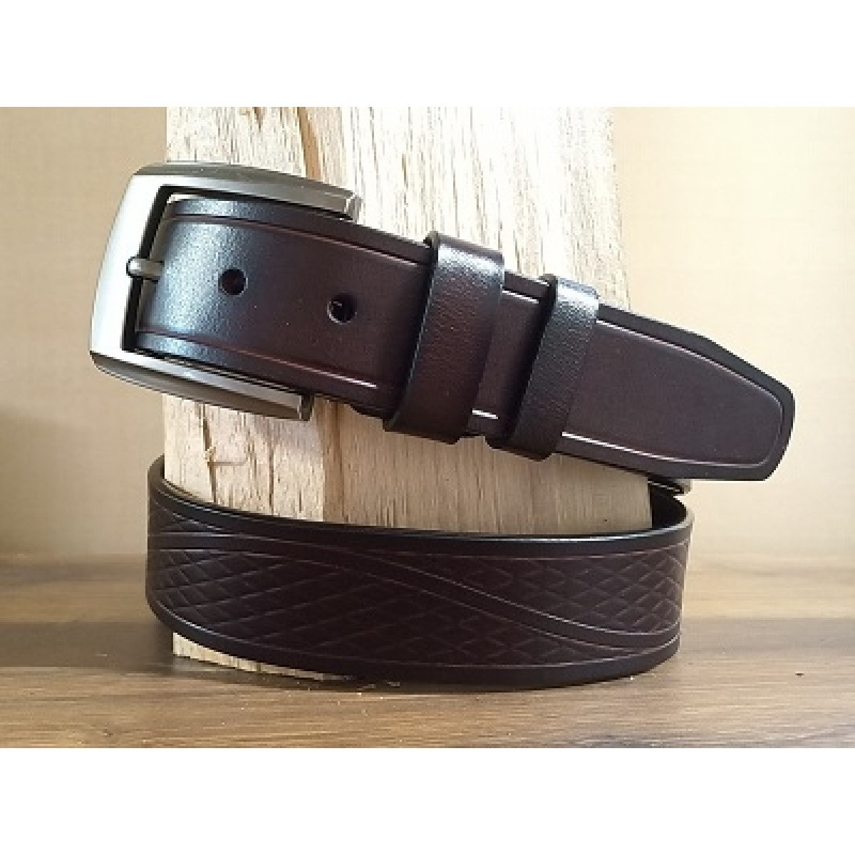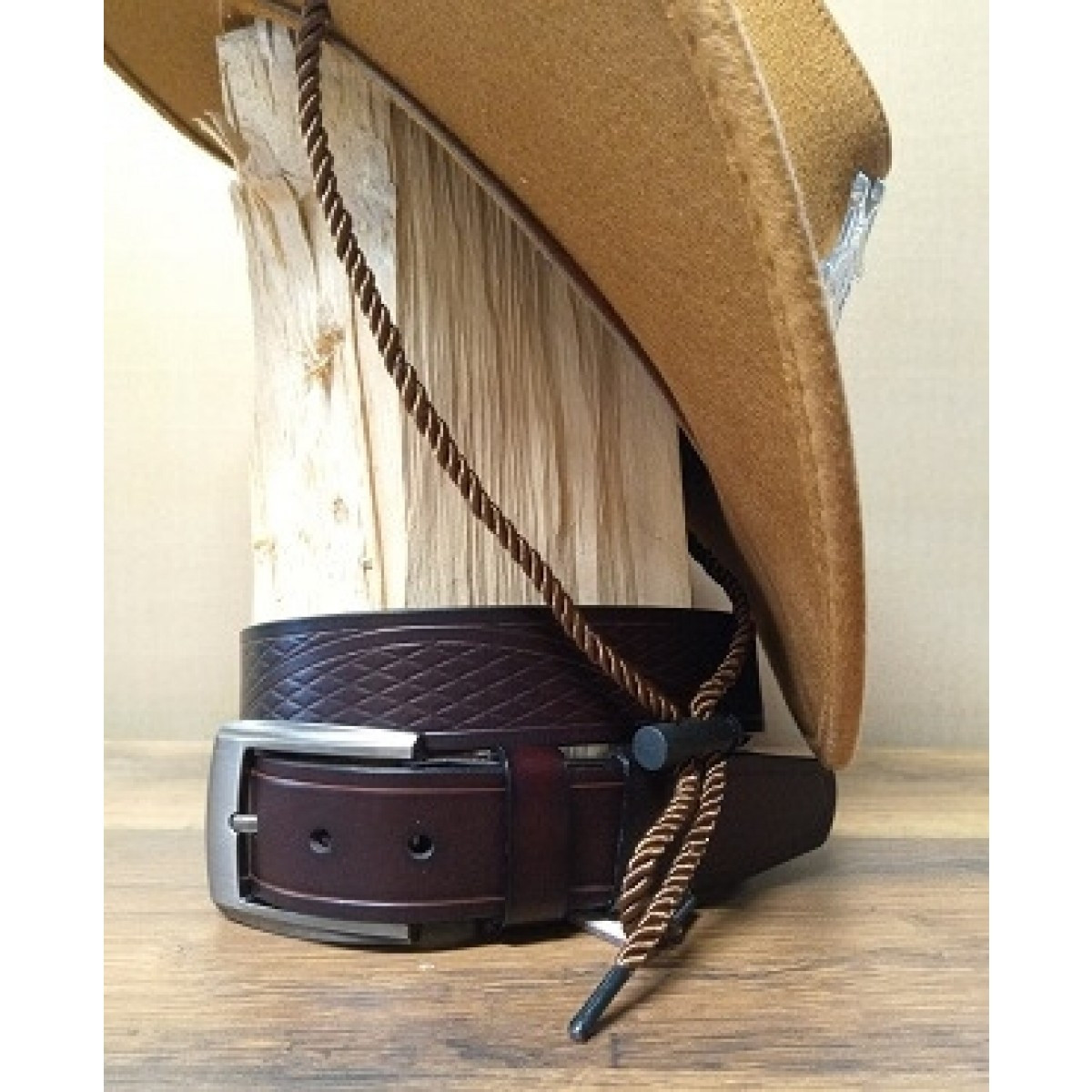 Klasičen moški usnjen pas z zanimivim karo vzorcem. Vzorec spominja na western stil. Pas odlikuje kvalitetno usnje in natančna izdelava. Vaš videz ne bo popoln, če ne boste izbrali pravega pasu. Moški usnjen pas v rjavi barvi se odlično poda k jeansu. Pas  je obdelan tudi s spodnje strani zato ni bojazni, da bi barva ostala na oblačilih.