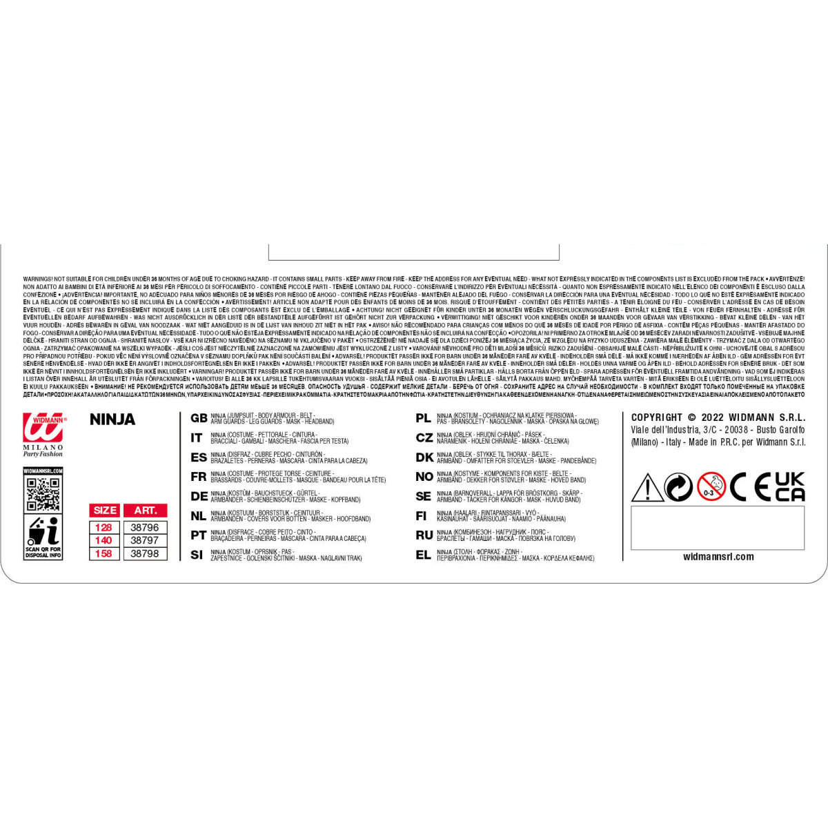 Ninje so bojevniki pretekle dobe. V otroškem pustnem kostumu za ninjo se lahko otroci poistovetijo z vlogo super vohunov in se naučijo dragocene skrivnosti kot temne figure senc v imenu cesarja na Japonskem. Oblecite svojega malega bojevnika v otroški pustni kostum za ninjo. Pustni kostum ninja vsebuje obleko, naprsnik, ščitnike za podlahti in kolena, masko, naglavni trak.