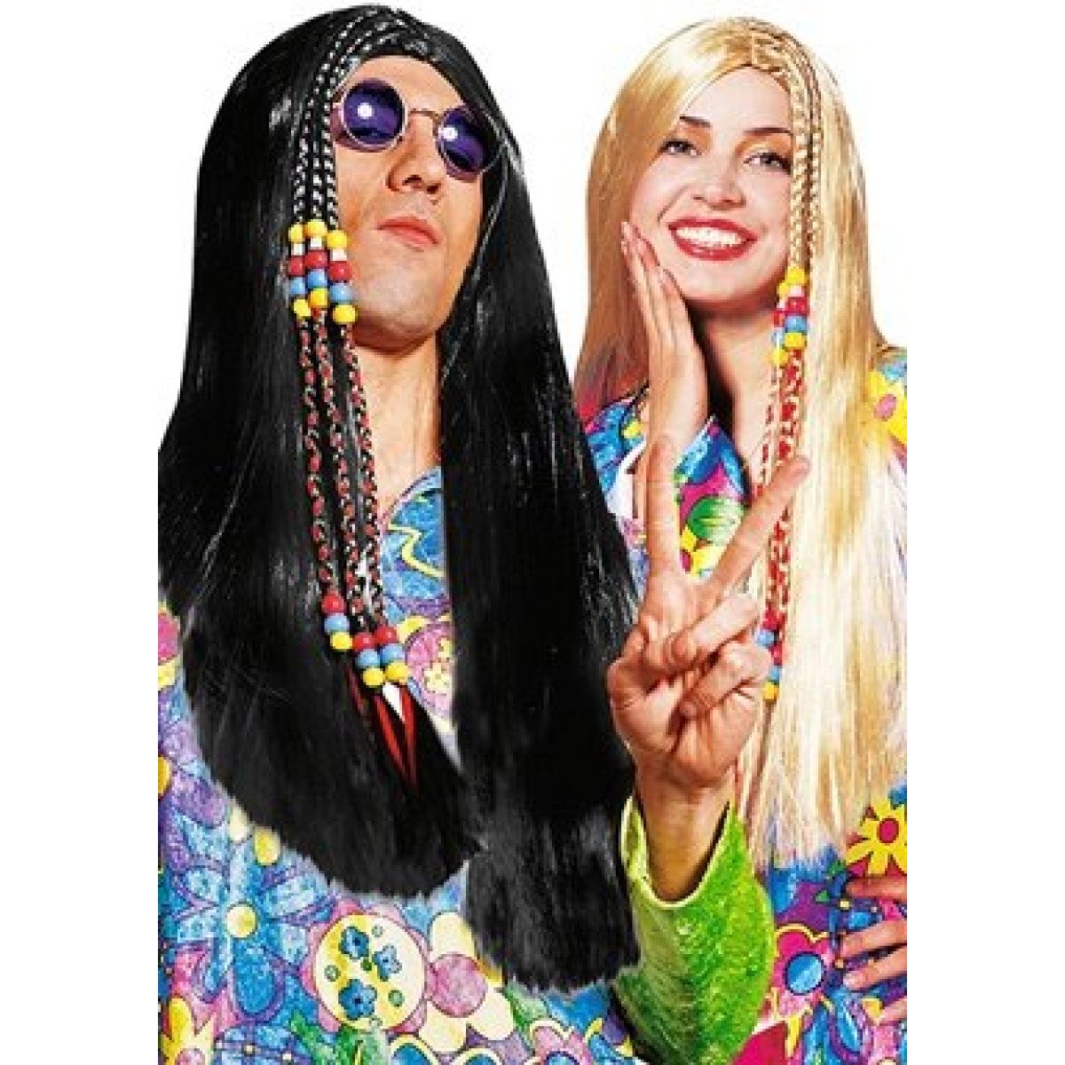 Z lasuljo za hipija boste izstopali na vsakem pustnem dogodku. Dolgi lasje imajo kitke, ki so okrašene z barvnimi krogci. Idealna za ljubitelje miru in ljubezni. Lasulja za hipija s kitkami.