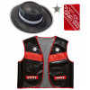 Pov, pov! Od kod prihajajo ti streli? Spet na zabavo prihajajo neustrašni kavboji. Z našim setom za kavboja bo vaš malček prava zvezda med pustnimi šemami. Set vsebuje telovnik, klobuk, zvezdo, ruto, naboje.