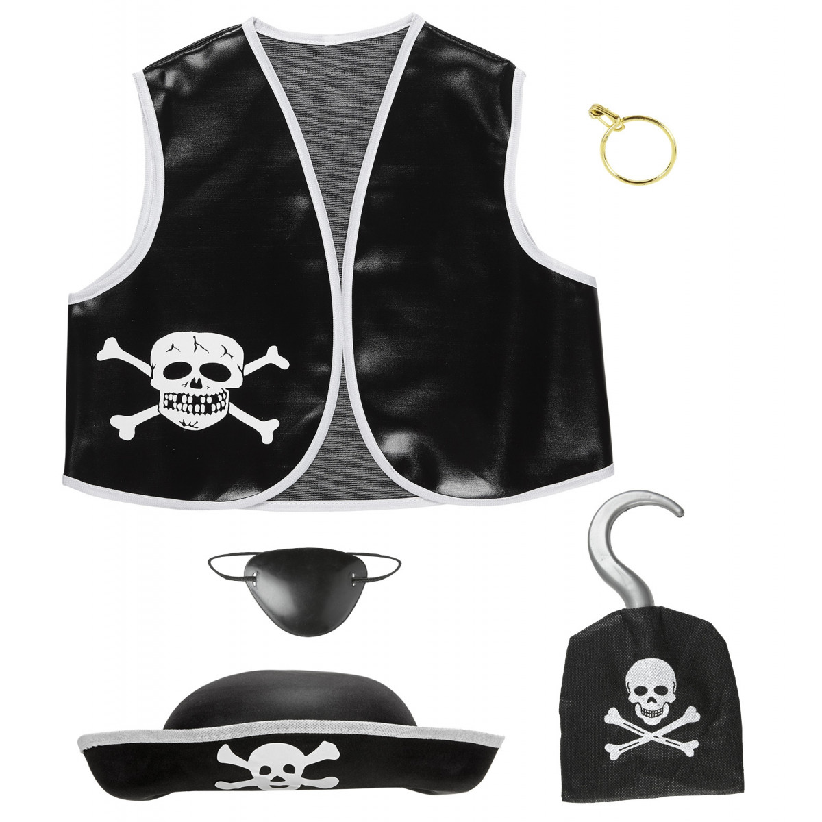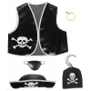 Še papiga manjka pa bo pravi pirat. Set za pirata ponuja vse kar se za pirata spodobi, da ima. Dodatki so v črno beli barvi, zato jih boste lahko preprosto kombinirali z ostalimi oblačili. Arrrr! Set za pirata vsebuje telovnik, klobuk, prevezo za oči, kljuko.