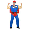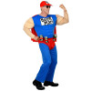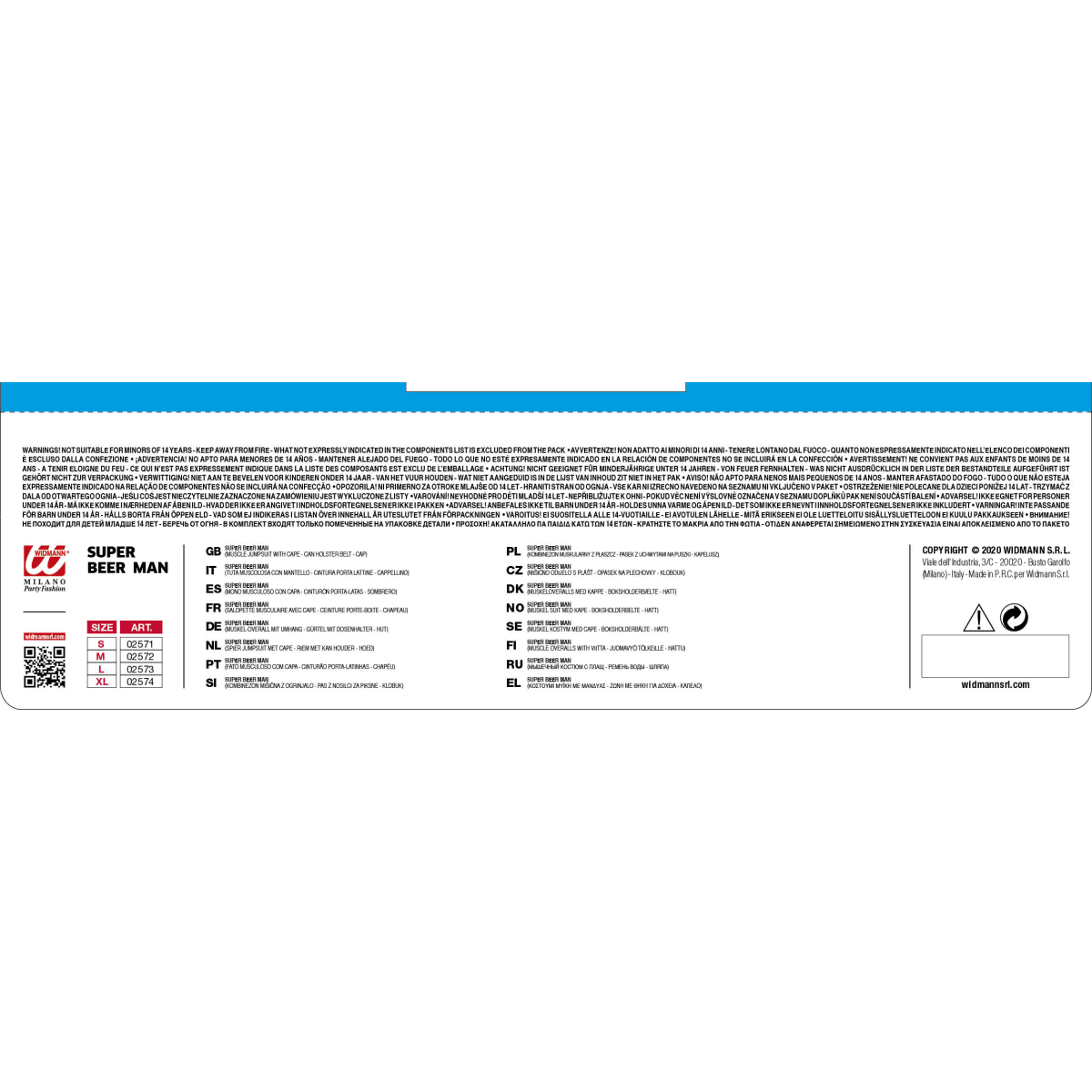 Pustni kostum "Beer Man" za moške je nadvse zabaven in izviren. Kostum je barvne kombinacije, ki vključuje svetlo modre hlače, ki se nadaljujejo v enodelno obleko s svetlo modrim odtenkom. Obleka ima všite umetne mišičaste blazinice, ki dajejo iluzijo močnih mišic na prsih in rokah. Na prsih je velik črn napis "BEER MAN". Rdeč plašč plapolajoče pada navzdol, kar ustvari superjunaški videz. Pas, ki je prav tako del kostuma, ima štiri prostorčke za pločevinke, kar je praktičen in duhovit dodatek. Za piko na i je priložena še rdeča kapa s šiltom in prav tako vsebuje napis "BEER MAN".