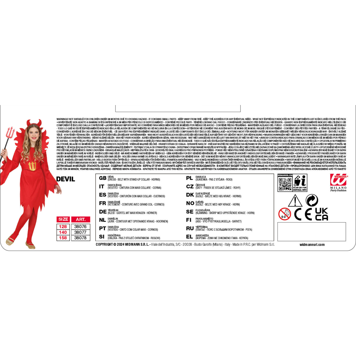 Vroča hudička Devilin bo pokazala vraga vsakomur, ki ji bo prekrižal pot. Naj bo spremljevalka Božička ali s prijateljicami. Naj bo vaša pustna zabava popolna s pustnim kostumom za hudičko Devilin. Kostum vsebuje obleko, pas podaljšan v ovratnik.