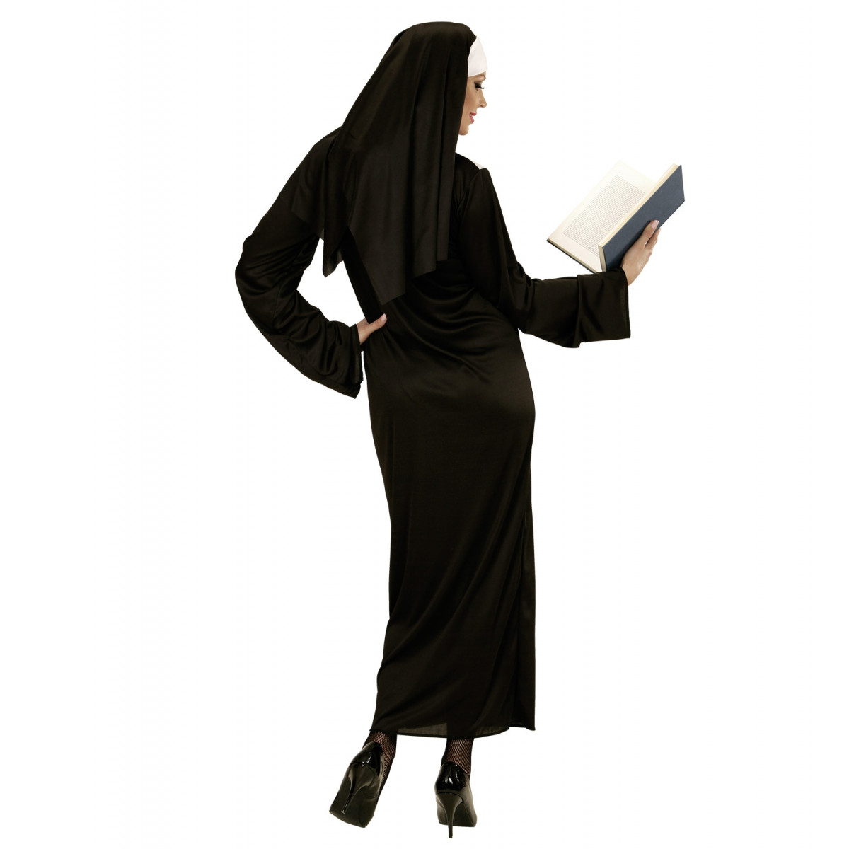 Le kdo ne bi postal nuna za en dan? Premagajte svojo radovednost in se preizkusite v vlogi nune, ki bo zagotovo nasmejal mnogo katero osebo. Kostum za nuno vsebuje obleko in naglavni del. Obleka je narejena iz lahkega poliestra in ima dolge široke rokave.