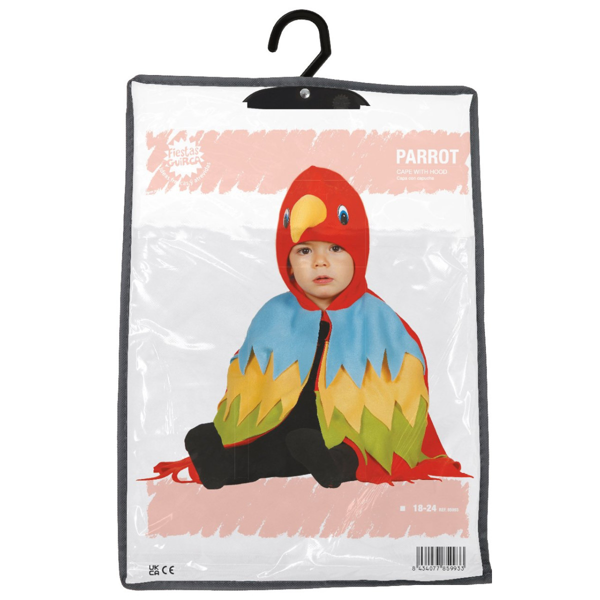 Otroški kostumom papagaja vključuje čudovit raznobarvni pončo, ki ponazarja papagajeva krila, ter kapuco, oblikovano z ljubkim kljunom in očmi, ki vašemu malčku pričarata pravo ptičjo podobo. Idealna izbira za pustne zabave, tematske rojstnodnevne zabave ali igranje vlog doma. Kostum je udoben, enostaven za oblačenje in poln veselja!