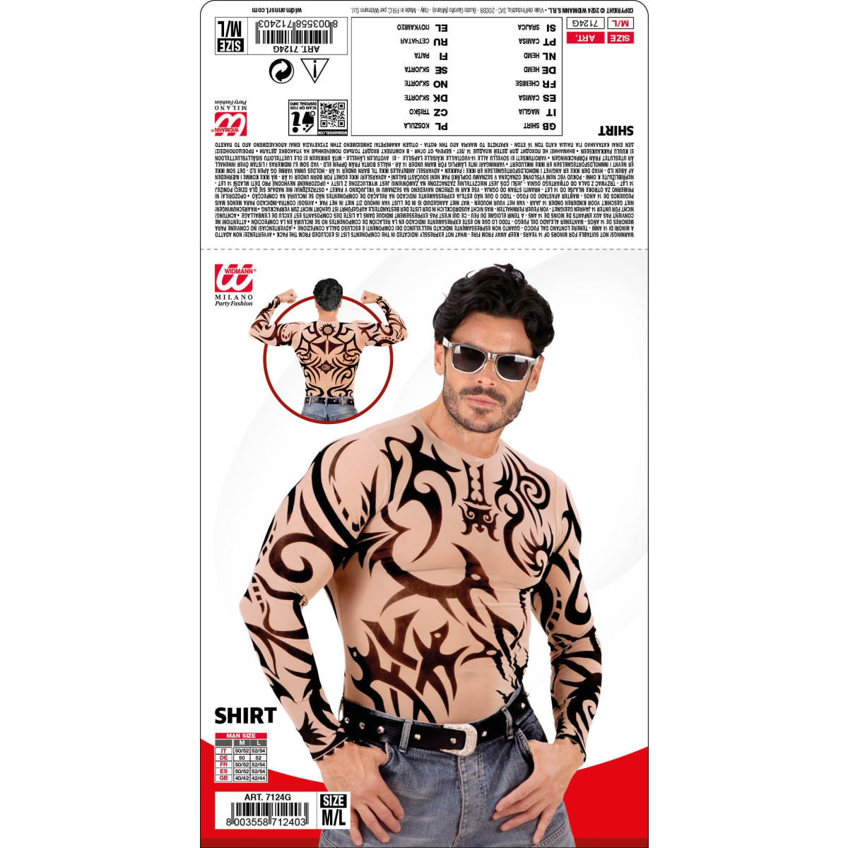 Oprijeta moška tattoo majica pričara impresivne tetovaže na zgornjem delu telesa. Zahvaljujoč zavajajoče resničnim tetovažam bodo na pustni zabavi vse oči uprte v vas. Tattoo majica je na voljo v eni velikosti, ki ustreza večini odraslih. Material: 92% poliester, 8% elastan.
