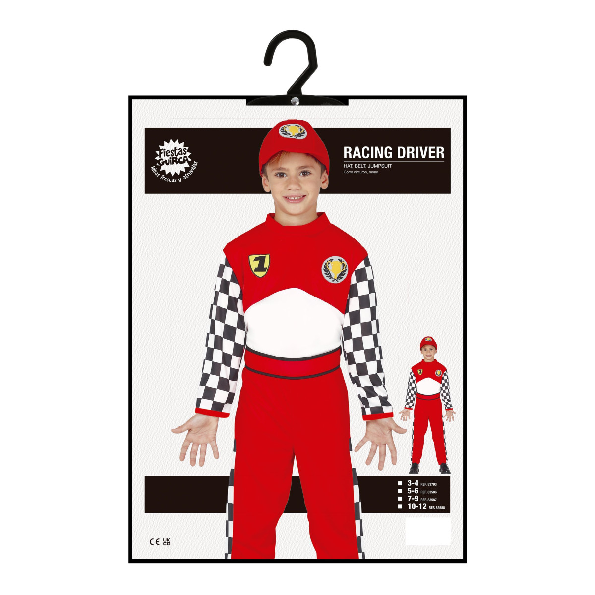 Otroški pustni kostum voznika Formule 1 bo navdušil vse male ljubitelje hitrosti in dirk. Kostum je oblikovan v živahni rdeči barvi s črno-belimi karirastimi detajli na rokavih in ob straneh hlač, kar ustvarja avtentičen dirkaški videz.