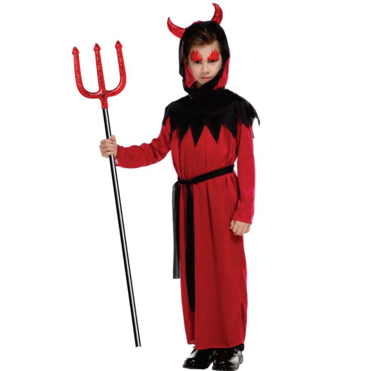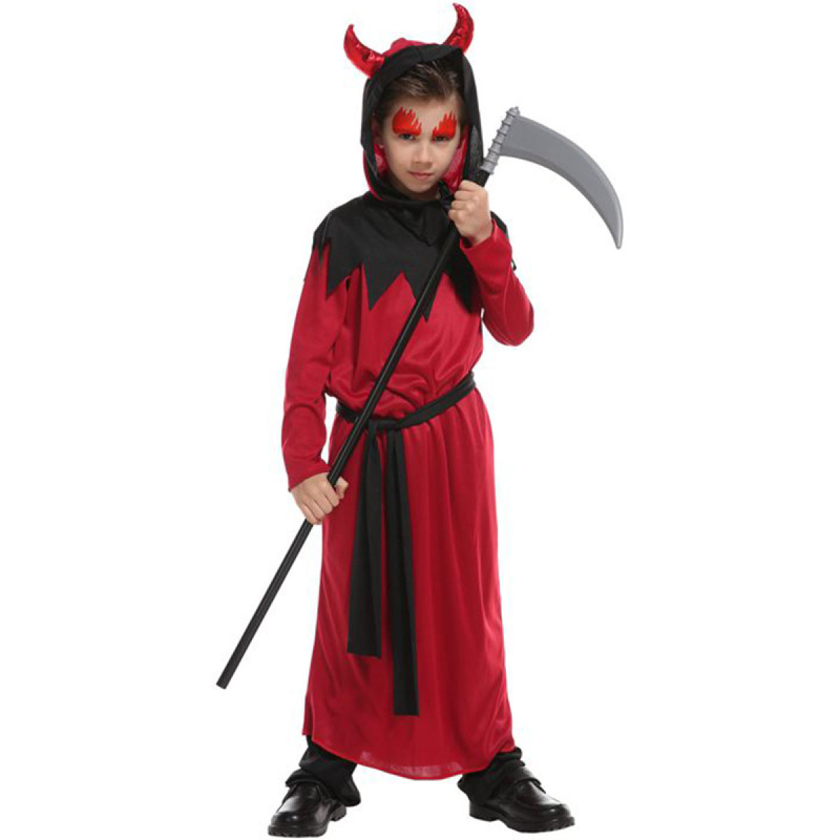 Želite izgledati kul v svojem fantovskem kostumu za hudiča? No, ta hudičev kostum bo zagotovo pustil vse brez besed, ko se boste pojavili na sceni. Ne glede na to, ali greste na zabavo v kostumih ali se potepate po ulicah s fanti. Kostum je svetlo rdeča tunika s kapuco, na kateri sta prišita dva rožička. Tunika sega do tal in ima črn pas. Čudovit kostum za letošnji Pust, Noč čarovnic in Miklavža. Torej, če potrebujete kostum, je to odlična izbira. To ni običajna strašljiva zver, vendar je dovolj, da pritegne pozornost kogar koli.