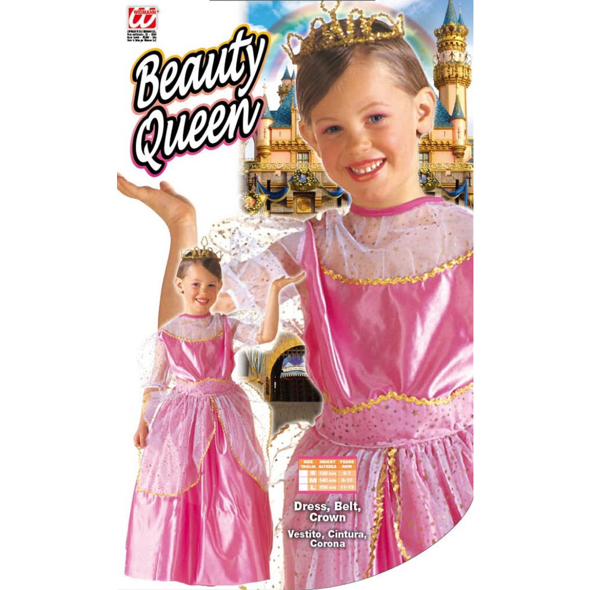 Obleka za malo princeso je klasičnega kroja s prosojnim blagom čez rokave in v pasu.  Bledo roza in bela barvna mešanica je čudovita za vsako lepotičko. Preobrazba v prikupno princesko bo dobrodošla na vsaki pustni zabavi. Kostum vsebuje dolgo obleko, ki sega do tal, pas in krono.