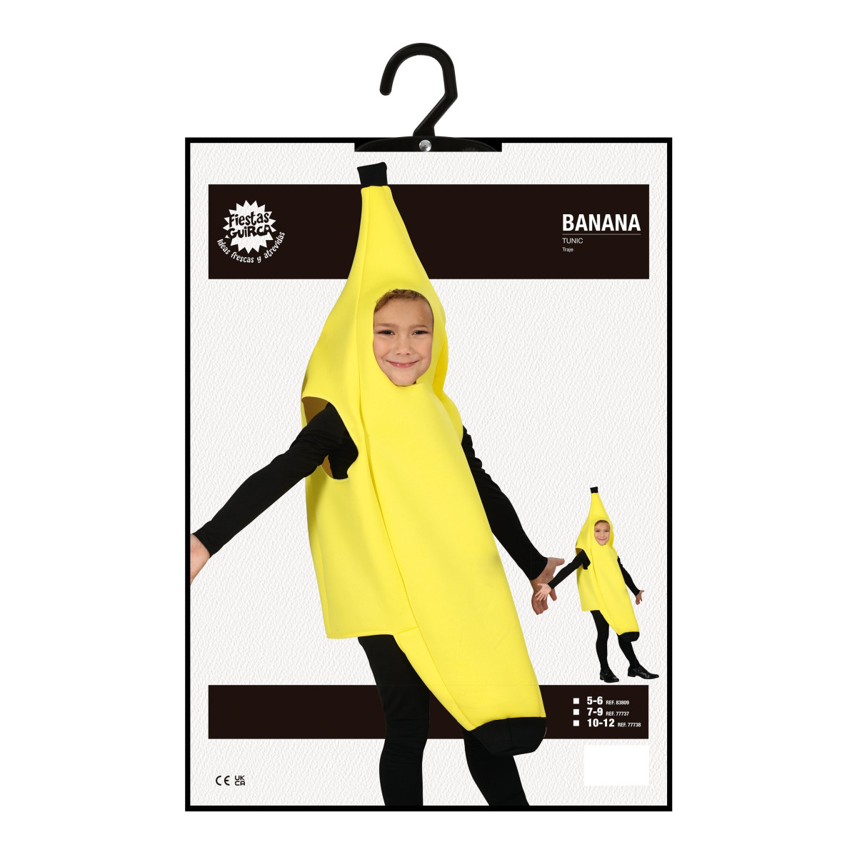 Otroški pustni kostum banana je zabavna in izvirna izbira, ki bo poskrbela za nasmehe na vsakem koraku. Svetlo rumen dizajn in realistična oblika banane bosta vašega otroka spremenila v pravo zvezdo pustne povorke.