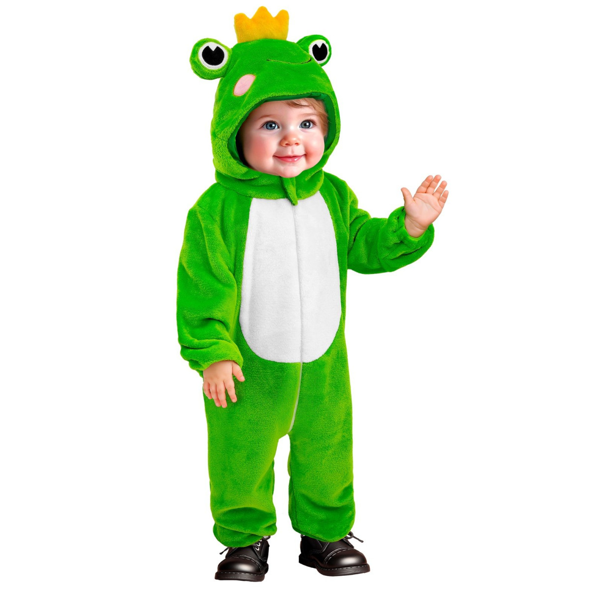 S tem kostumom bo vaš otrok pravi mali žabji princ ali princesa. Pajac v zeleni barvi s kapuco, okrašeno z velikimi očmi in kronico, daje simpatičen ter igriv videz. Mehka tkanina zagotavlja toplino in udobje, praktična zadrga pa omogoča hitro preoblačenje. Kostum žabice je odlična izbira za pustne zabave, fotografiranja ali kot darilo za male ljubitelje živali.