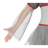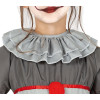 Dekliški pustni kostum srhljiva klovnesa je sestavljen iz obleke, pajkic in ovratnika. Obleka ima kratko krilo s tilom in značilne barvne detajle, pajkice dopolnijo celoten videz, ovratnik pa zaokroži kostum. Komplet je oblikovan kot celota in omogoča preprost, prepoznaven videz klovnesе brez dodatnih dodatkov.