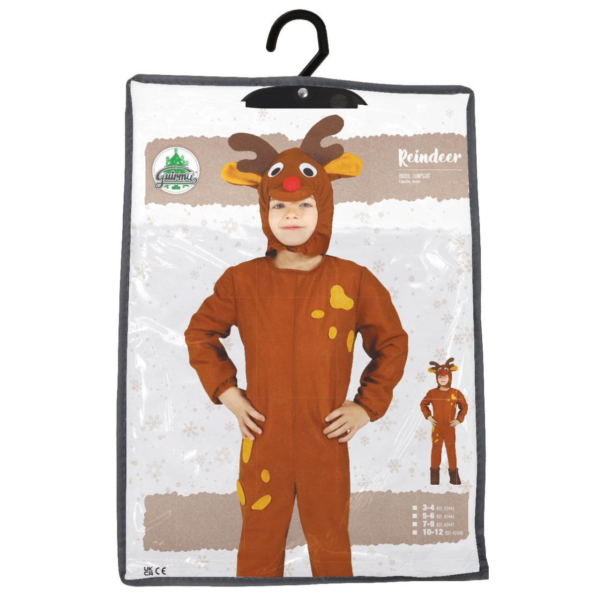 Kostum vsebuje enodelni pajac in kapuco v obliki jelenove glave.