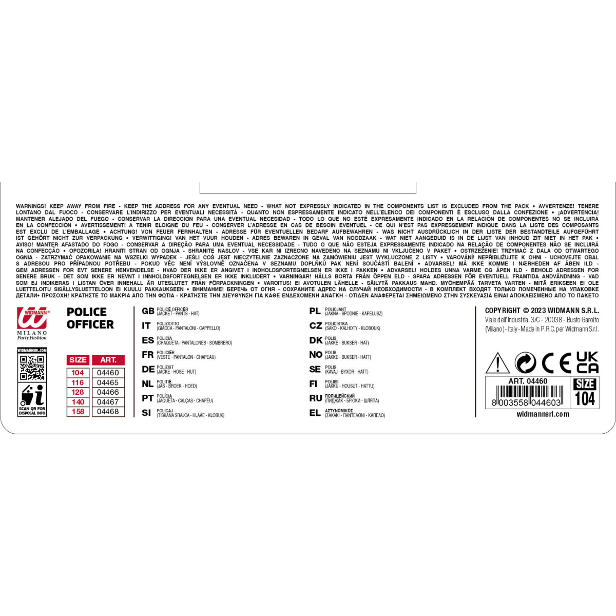 Pustni Kostum Policajka Otroški