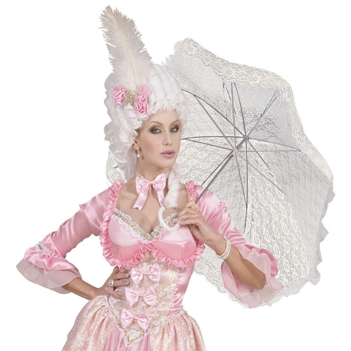 Senčnik v baročnem stilu je primeren dodatek h baročnim in srednjeveškim ženskim pustnim kostumom za grajsko in mestno gospodo. Senčnik za dame v beli barvi.