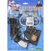 Set za policaja vključuje: pištola, lisice, značka, torbica za pištolo in piščalka.