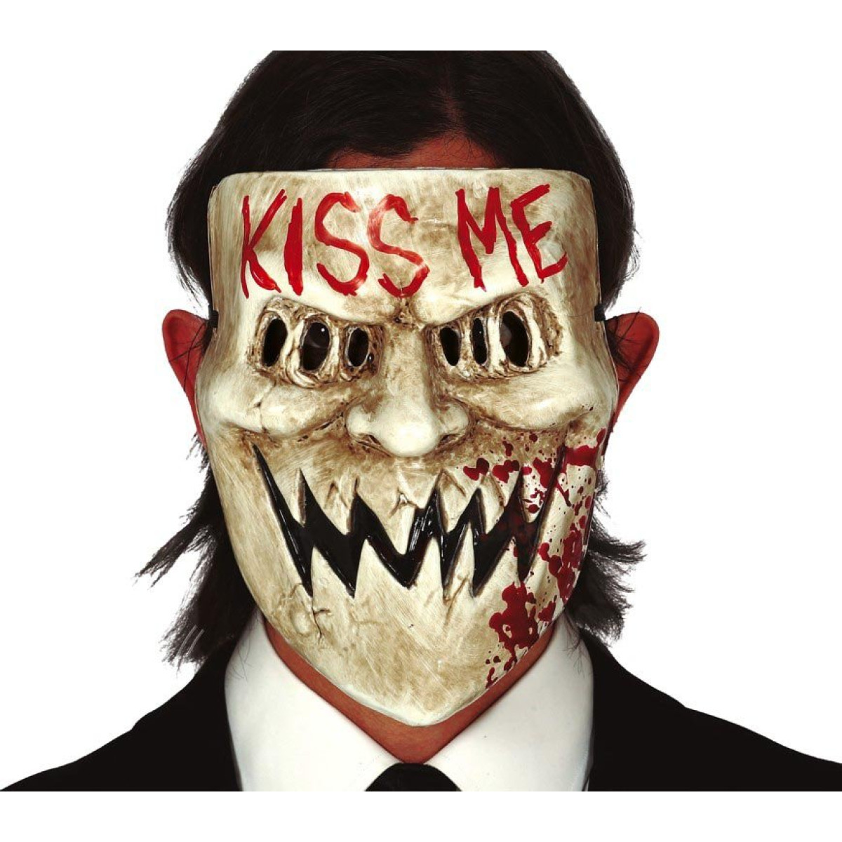Grozljiva maska "Kiss Me"  je popoln dodatek za strašljive kostume in tematske zabave. S provokativnim napisom na čelu in grozljivim dizajnom vzbuja mešanico strahu in začudenja. Izdelana je iz kakovostnega PVC materiala, ki je trpežen in udoben za nošenje.