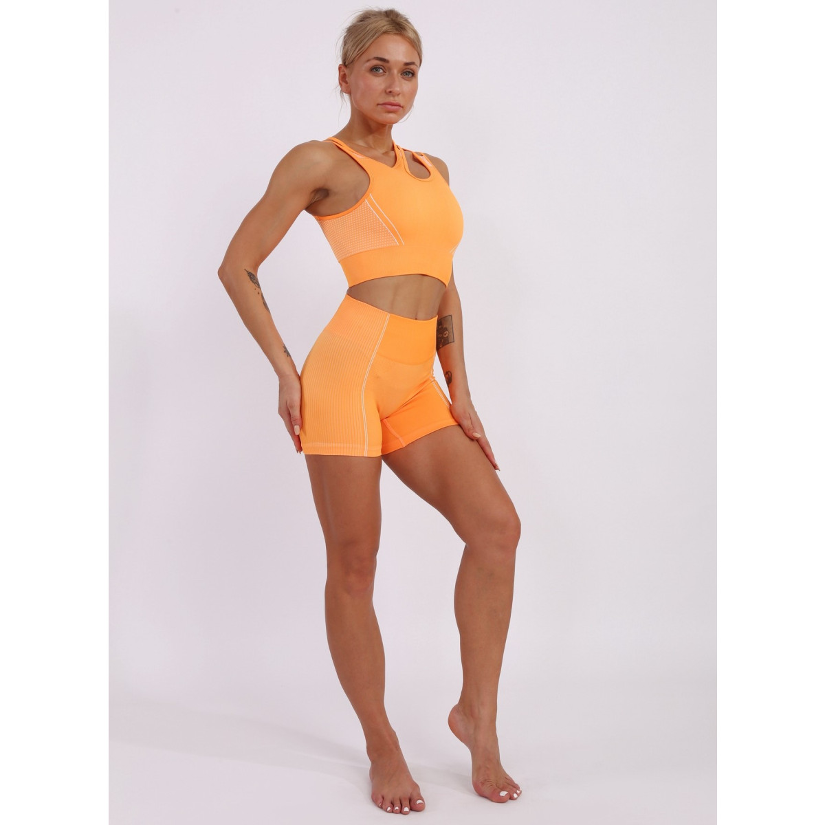 Ženski športni komplet Orange v oranžni barvi je primeren za šport, ples ali vsakodnevno uporabo. Pajkice in top sta narejena iz kvalitetnih in udobnih materialov. Legice odlično oblikujejo postavo in omogočajo svobodo gibanja. Prilegajo se na vse tipe postave.