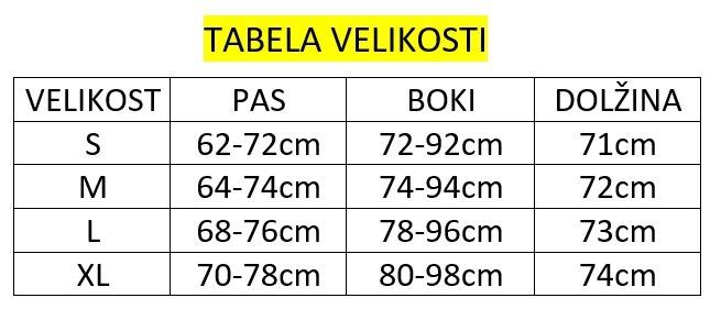 Opozorilo: Lahko pride do odstopanja pri meritvah 1-3 cm. Na prvi vtis lahko legice izgledajo manjše, vendar ni nič narobe saj se zaradi visoke elastičnosti raztegnejo in prilagodijo vašemu telesu.
